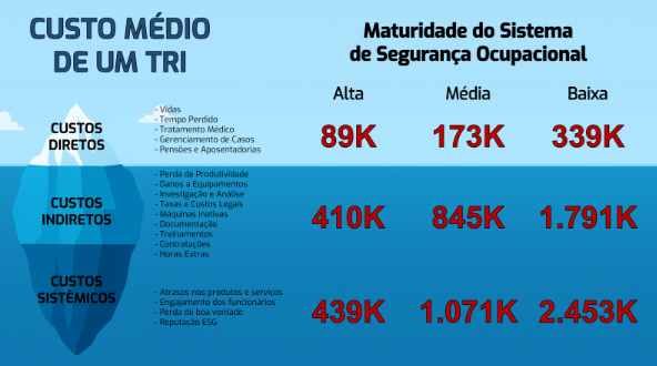 O impacto econômico de um TRI pode ser compreendido pelo modelo do iceberg de custos: a parte visível é apenas a ponta. A maior parcela permanece submersa na operação.